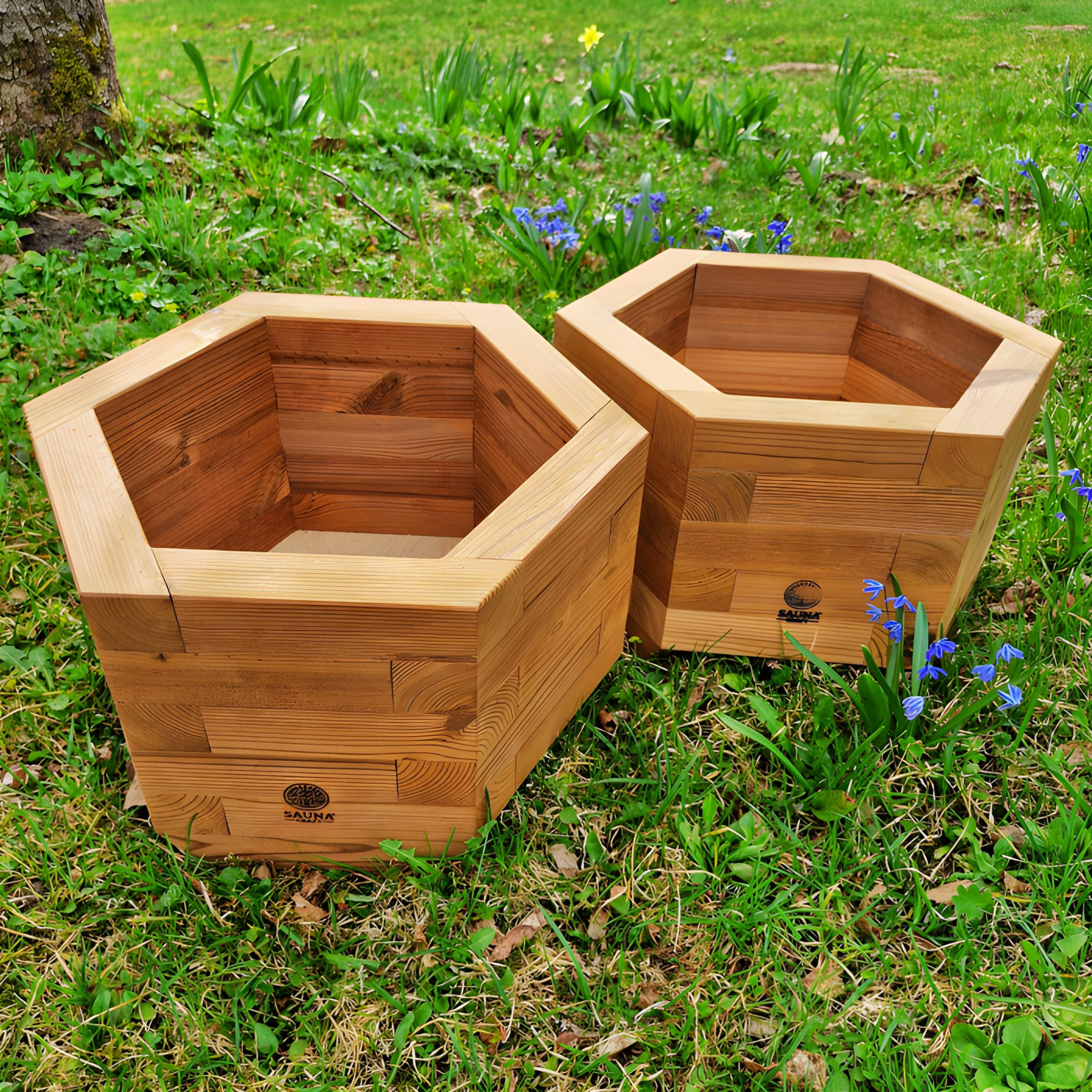 Käsitööna valminud kuusnurkne termopuidust lillekast (34.5x40x24 cm), mis sobib ideaalselt terrassile või rõdule kevadet tooma.