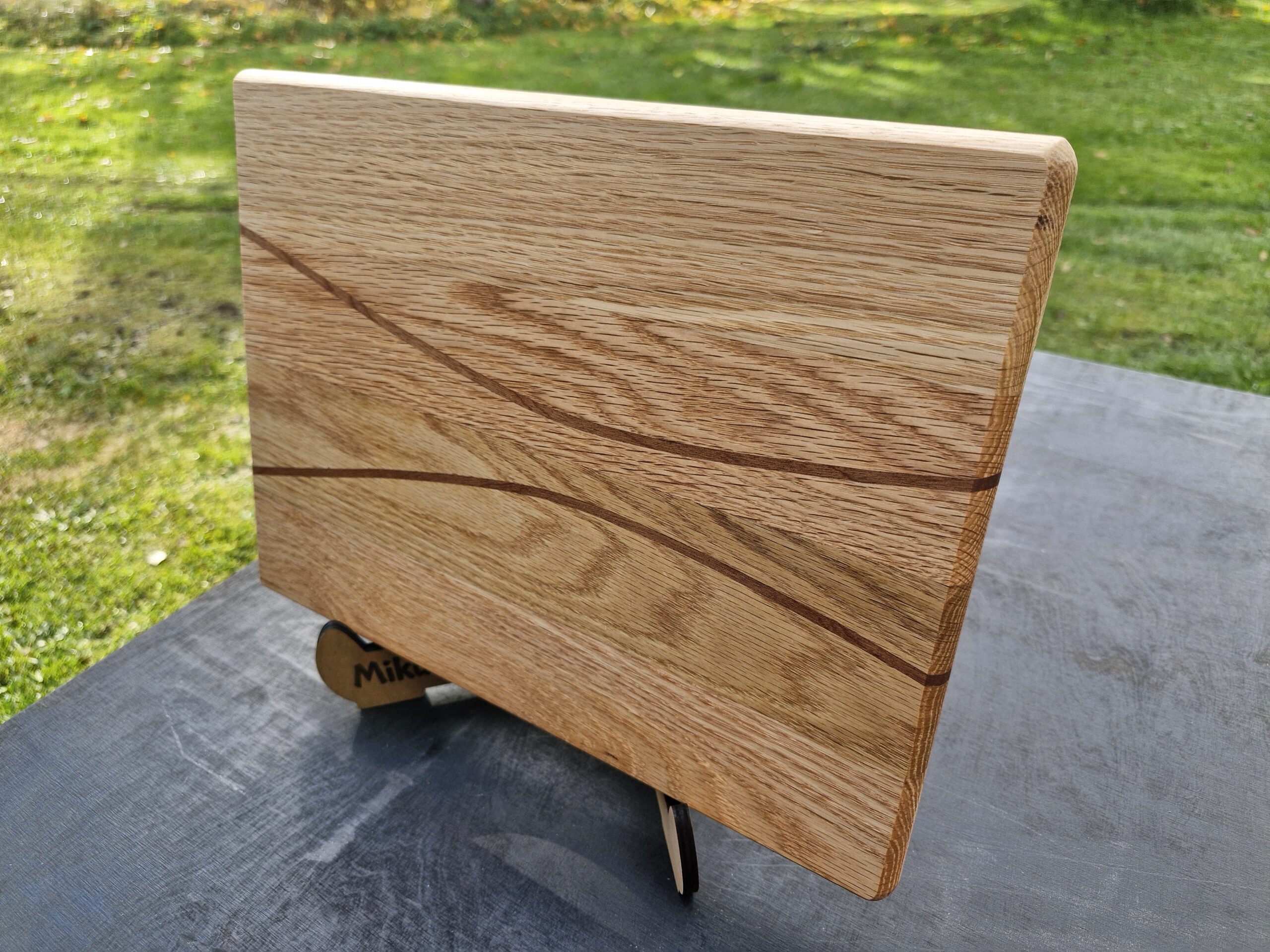 Mahagonikaar on lõikelaud, kus tamm ja mahagon teevad koostööd. Põhiosa on tugev tamm, mille sisse jooksevad kaks mahagonist kaart. Need kaared annavad lauale lihtsa, kuid selgelt eristuva joone ja toovad tamme heleda tooni kõrvale sügavama, soojema varjundi.